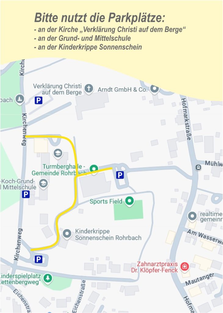 Alternativ ist die Turmberghalle in ca. 2-3 Gehminuten von diesen Parkmöglichkeiten erreichbar: