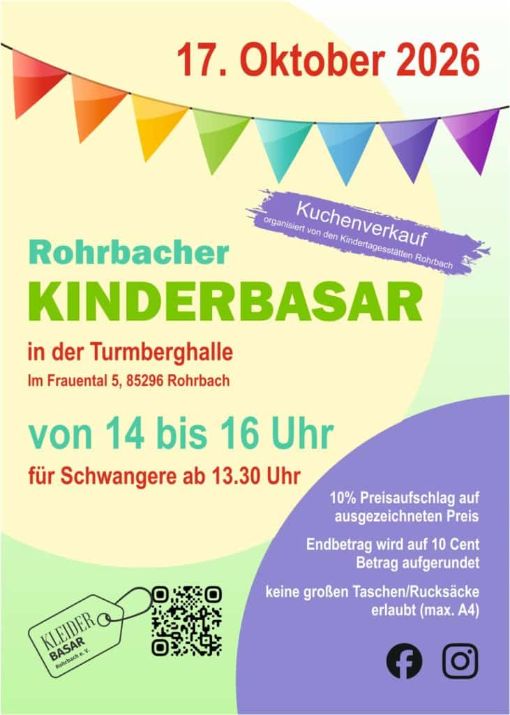 Am 17. Oktober 2026 findet der nächste Kinderbasar in der Turmberghalle in Rohrbach statt. Der Kuchenverkauf wird vom Elternbeirat einer Rohrbacher Kindertagesstätte organisiert.